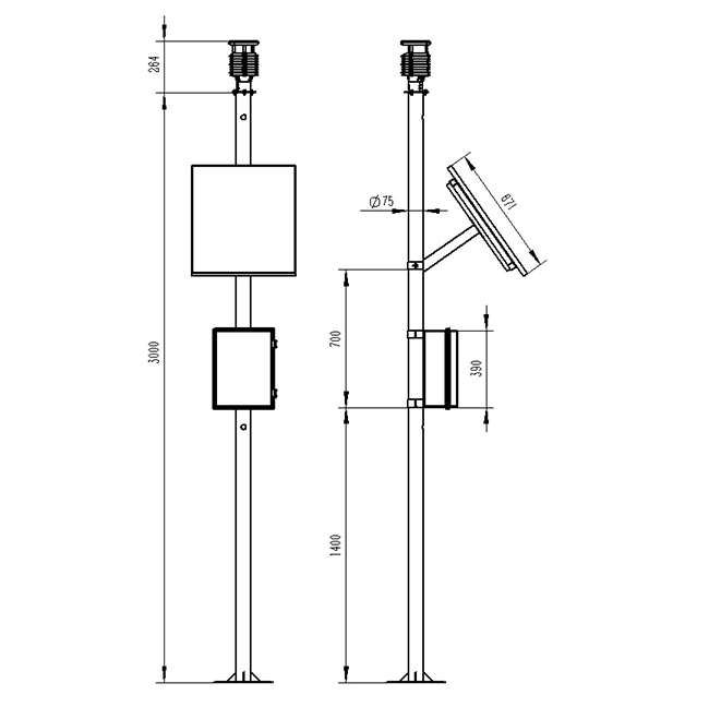 5、兩米碳鋼支架,頂部無需法蘭盤可直接套接傳感器